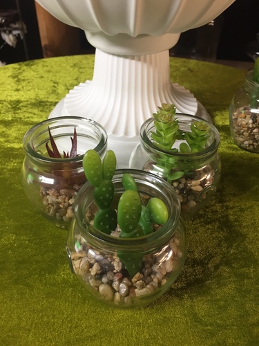 Succulents in small glass vases