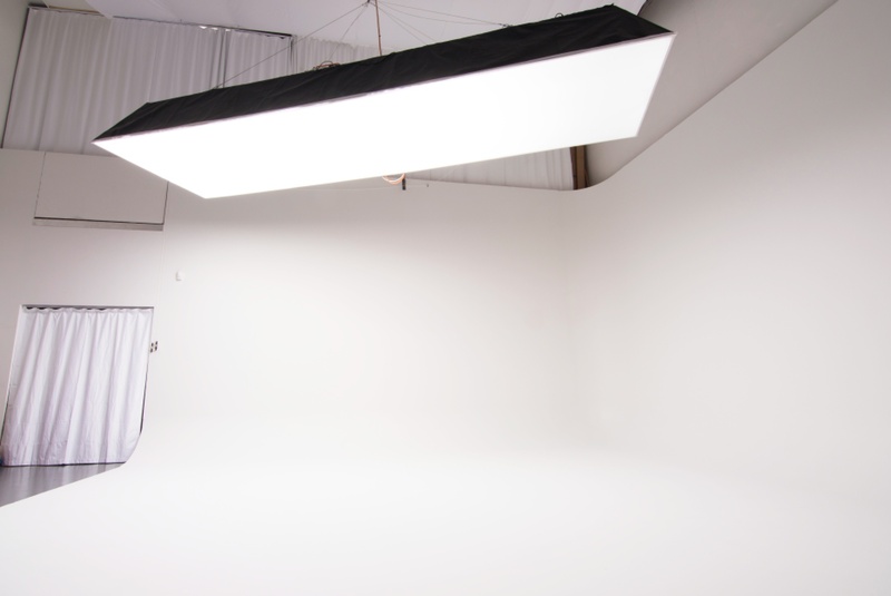 Our 10x8m rental studio has a 8x6m seamless cyclorama shooting space with a unique 5x1.5m ceiling softbox.