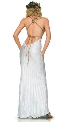 Costume includes pleated dress with gold rope wrap to tie at the back