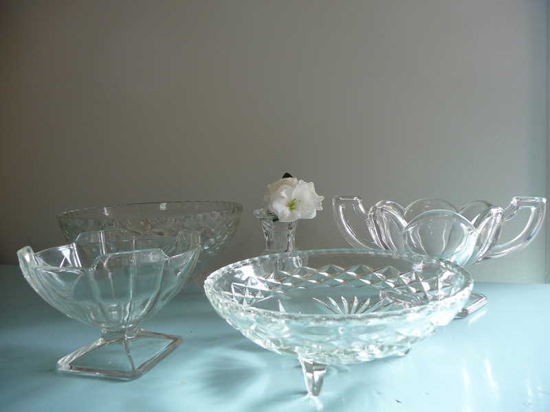 Wide range of glass and crystal comports in all shapes sizes and prices ($3.50-$7) to really make the wedding tables sparkle. Delivery and collection optional.