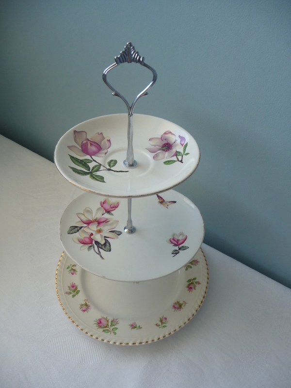 Vintage tiered plates and cake stands