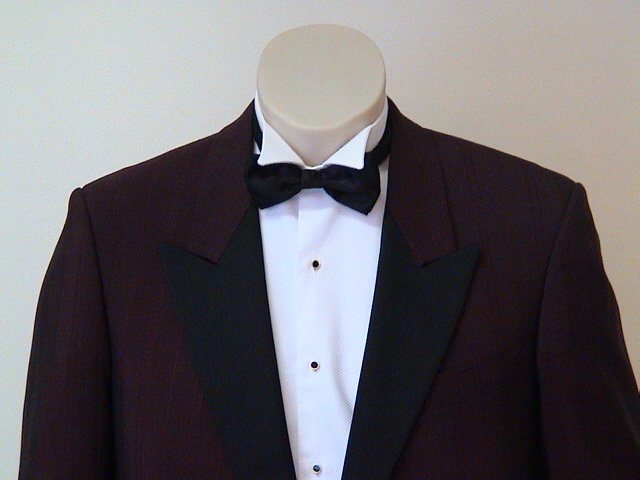 Single-breasted, 1 button, Black Satin Peak Lapel.